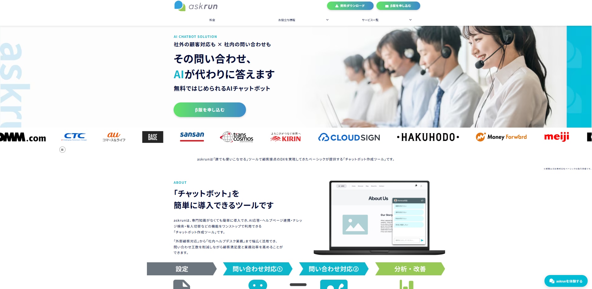 チャットボットで問い合わせ対応を自動化するならaskrunがおすすめ