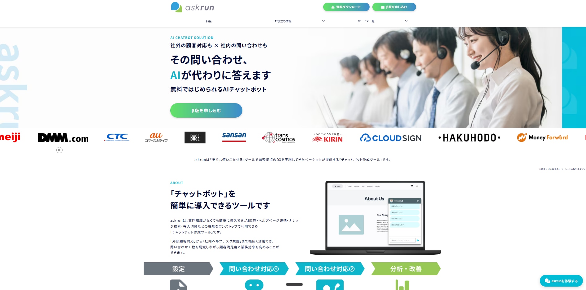 - 3.1.askrun|無料プランを含む5プラン、社内外両対応のAIチャットボット