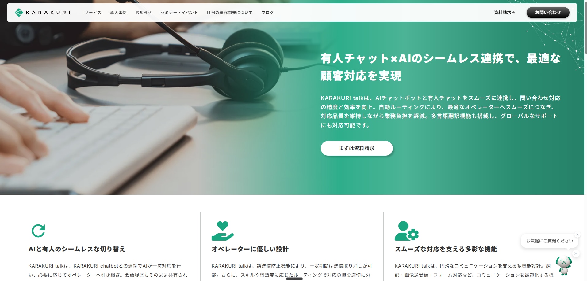 KARAKURI chatbot|生成AI+定型AIのハイブリッド、カスタマーサポート特化