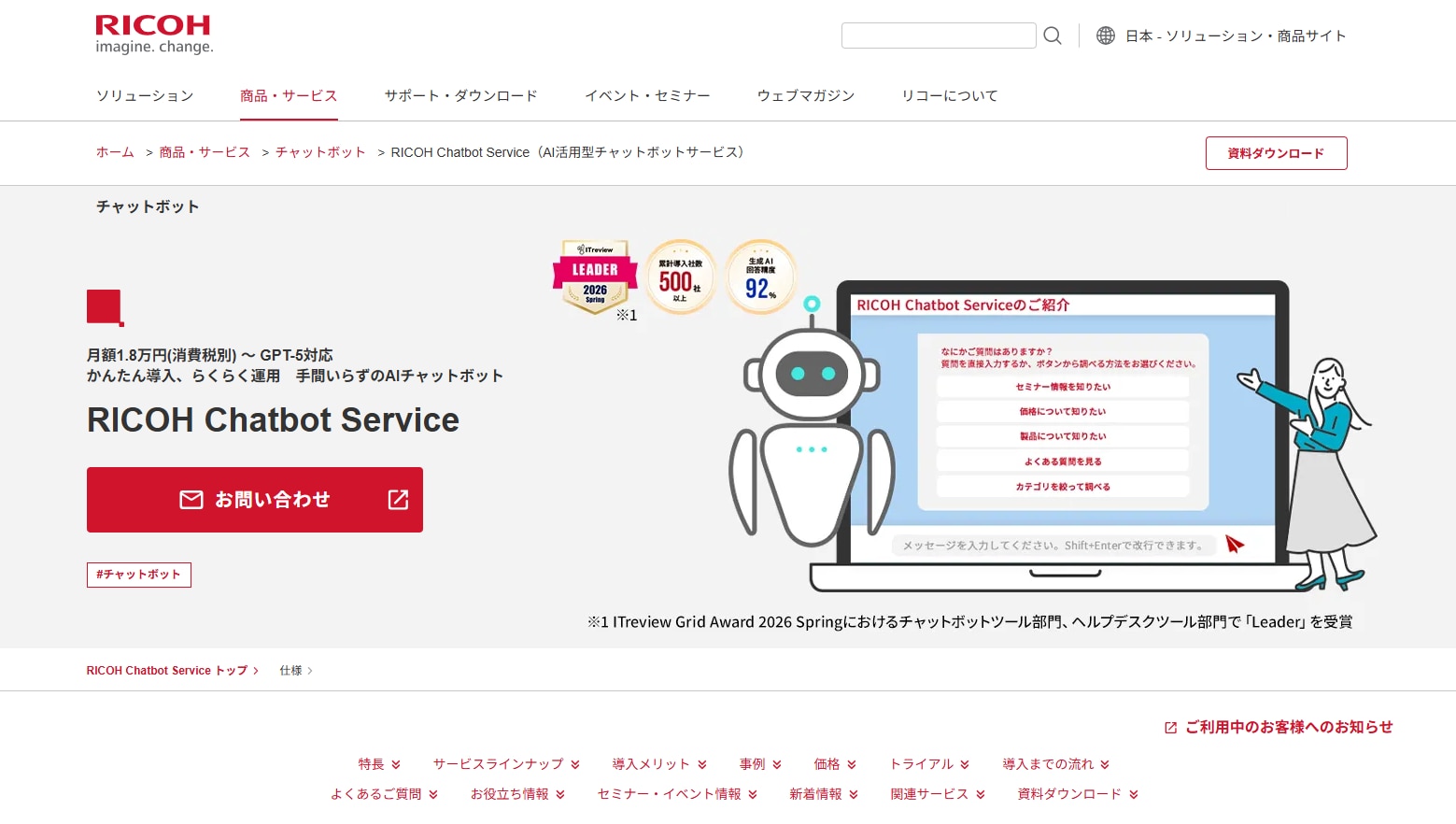 RICOH Chatbot Service | 30日間無料トライアル | 4プラン | 社外/社内 両対応 |