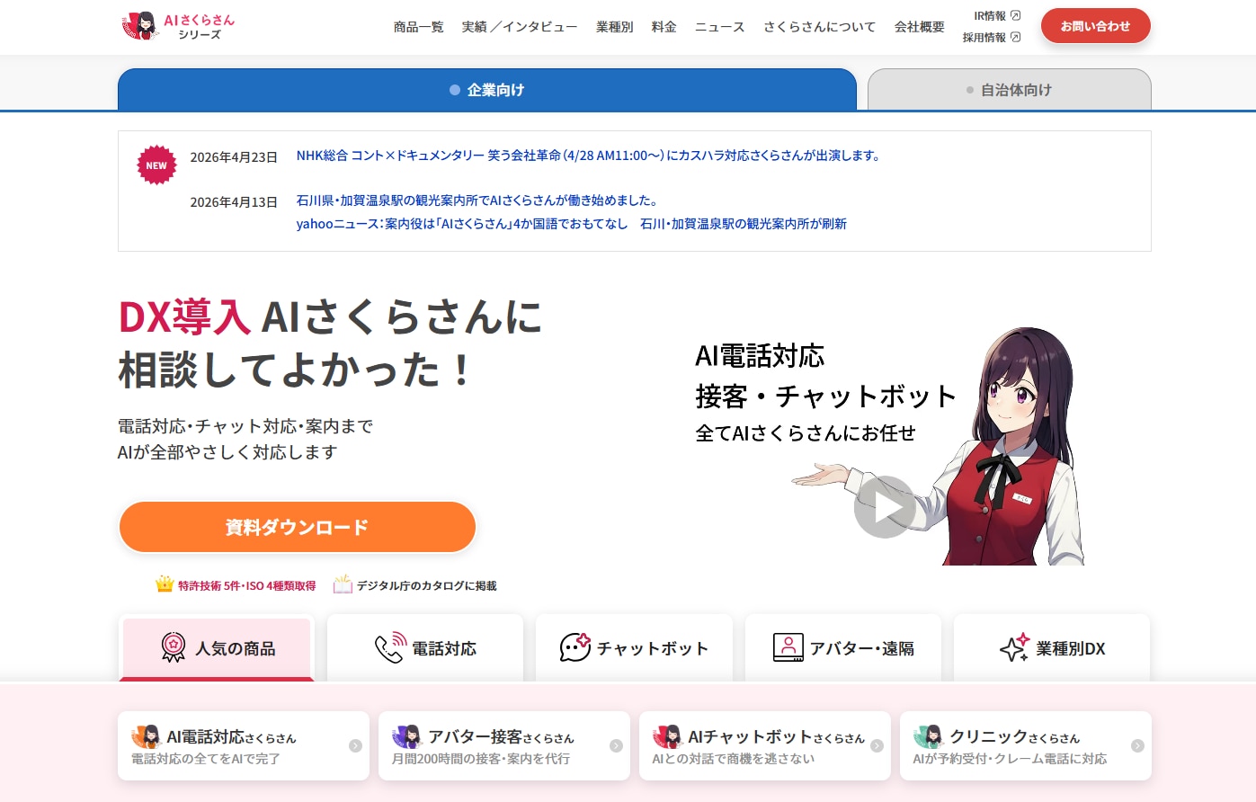 - 3.8.AIチャットボットさくらさん|ヒューマン型UIで接客体験を再現
