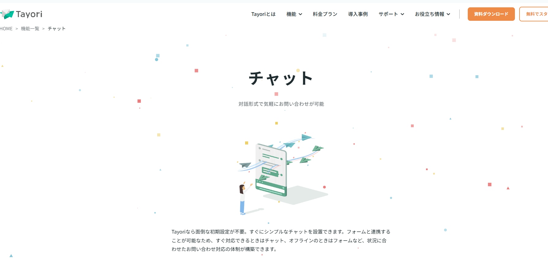 Tayori|FAQと連動するAIチャットボット、月1万円未満から