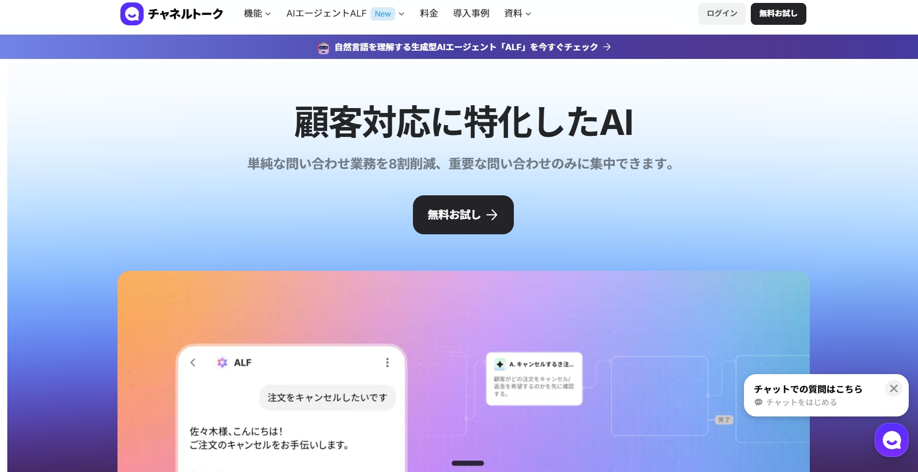 - こんな人におすすめ:社外・社内の問い合わせを1本で自動化したい/まず無料で試して、そのまま本格運用にスケールさせたい方