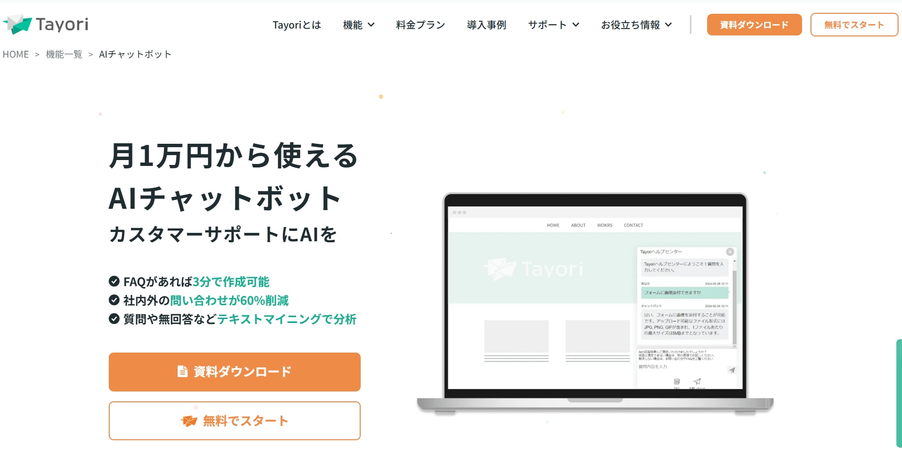 - 無料プラン:30日間無料トライアル(QA数100問まで)