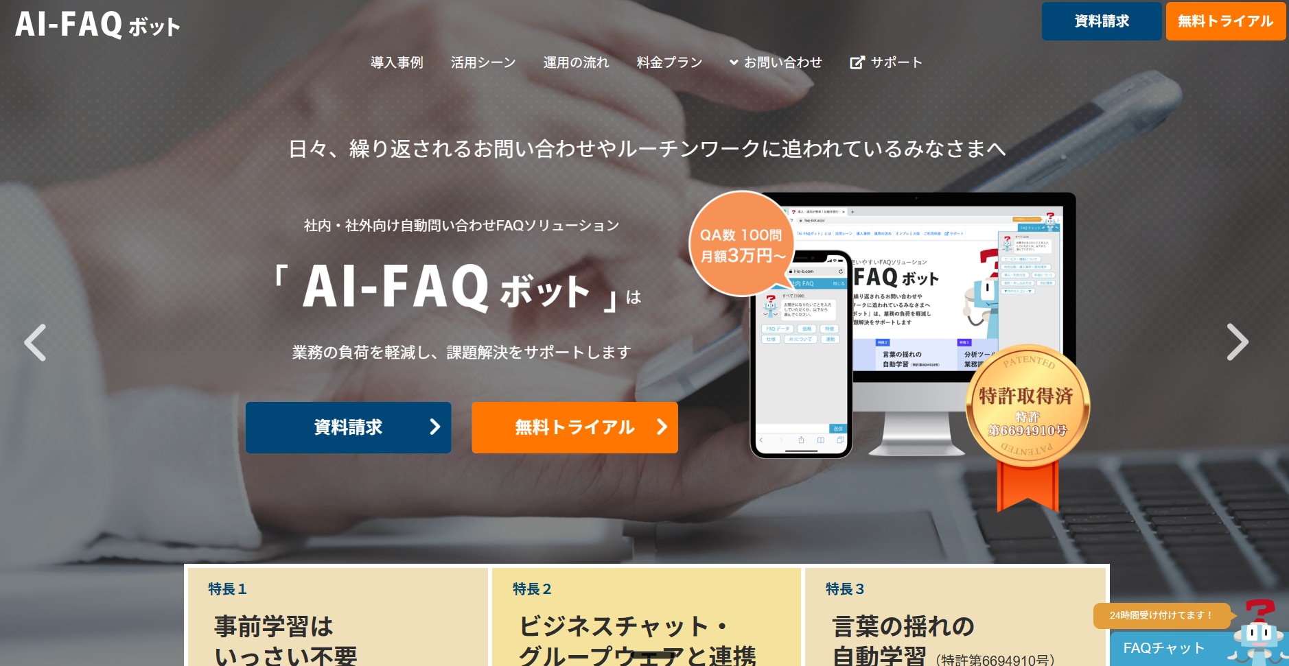 AI-FAQボット(30日間無料トライアル・社内問い合わせ削減に特化)